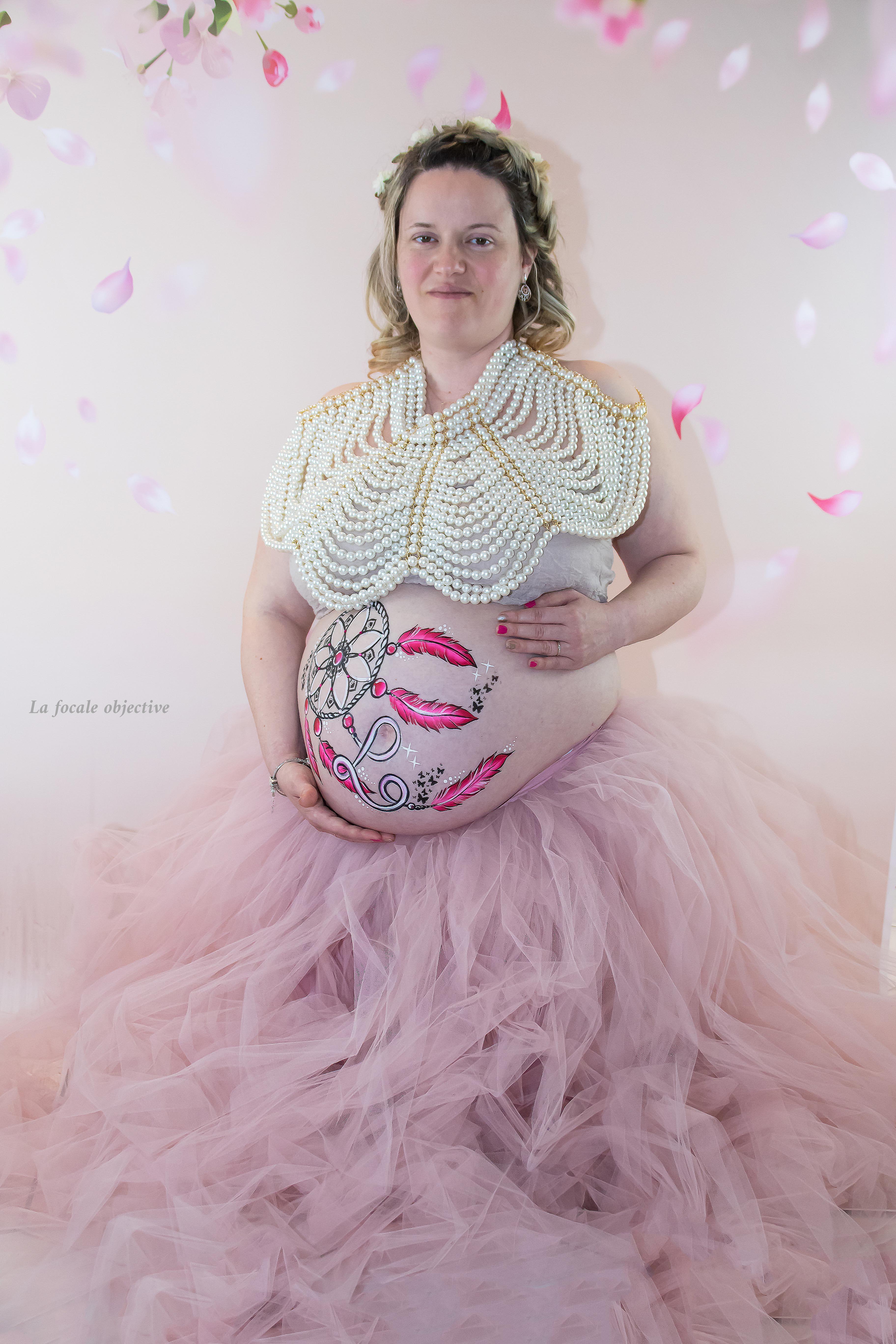 Premières photos réalisées avec la robe choisit avant le belly, ensuite c’est parti pour quelques heures entre les mains de ma partenaire, diverses photos sont réalisées sur le déroulé de la séance peinture.
